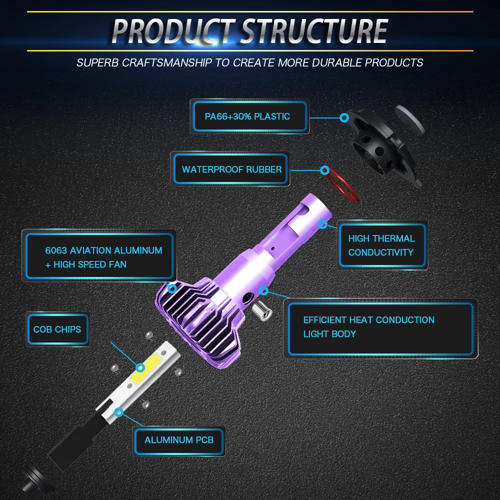 Detailed ImageMore images of IP68 High Brightness China Factory Fanless Cooling S9 9005 H13 H7 Car Led Headlight
